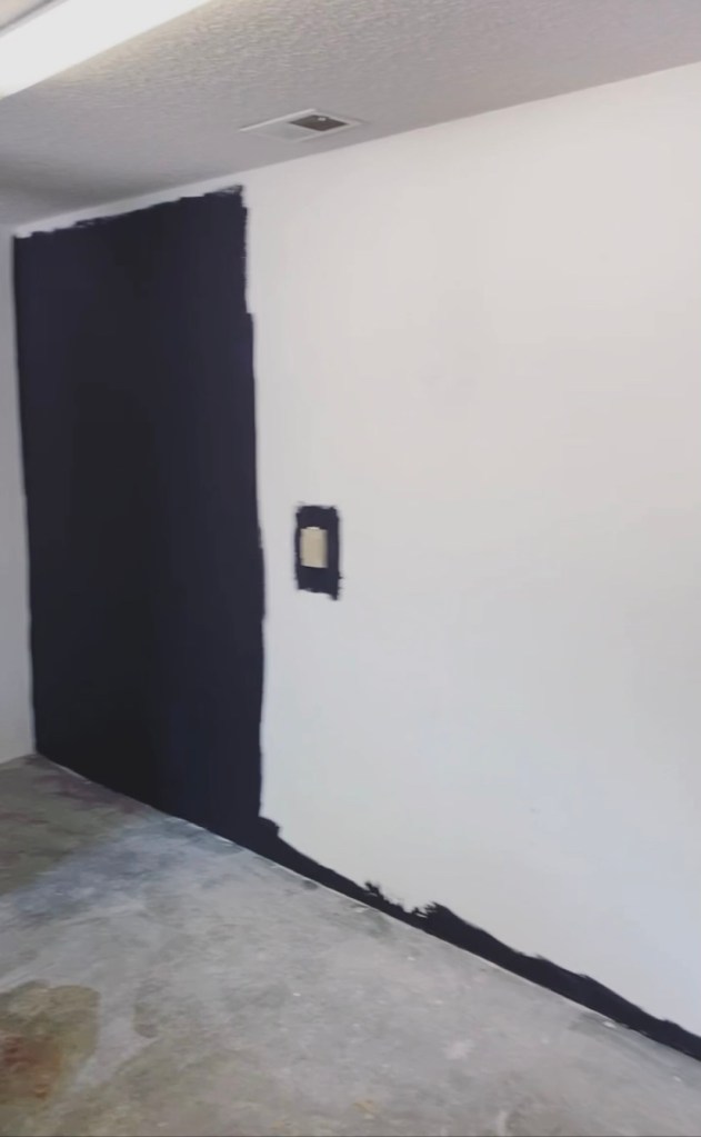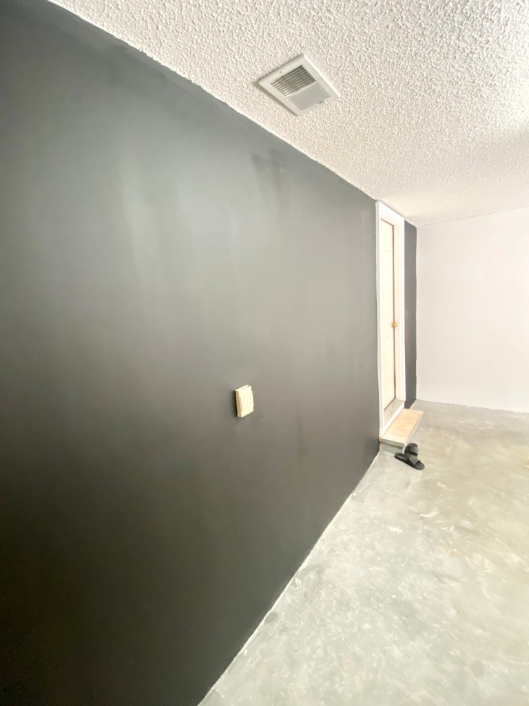 I ended up thinking a quart of black paint would cover the back wall. Boy, was I wrong! The walls absorbed SO much paint, it was crazy. It’s like they were super dehydrated and the black paint just soaked in immediately.